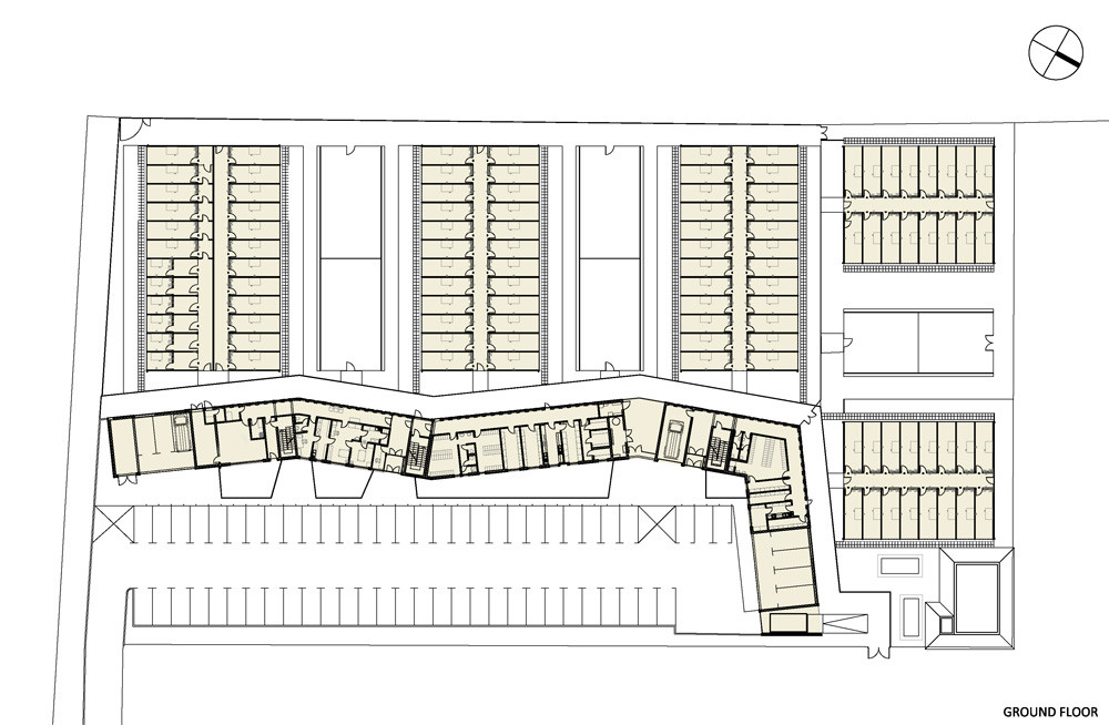 Completed in 2007 in Ljubljana, Slovenia. Images by Miran Kambič. The Police Dog Training Facility comprises three zones: the first is approach zone with parking spaces and area entrances; the second zone, principal...